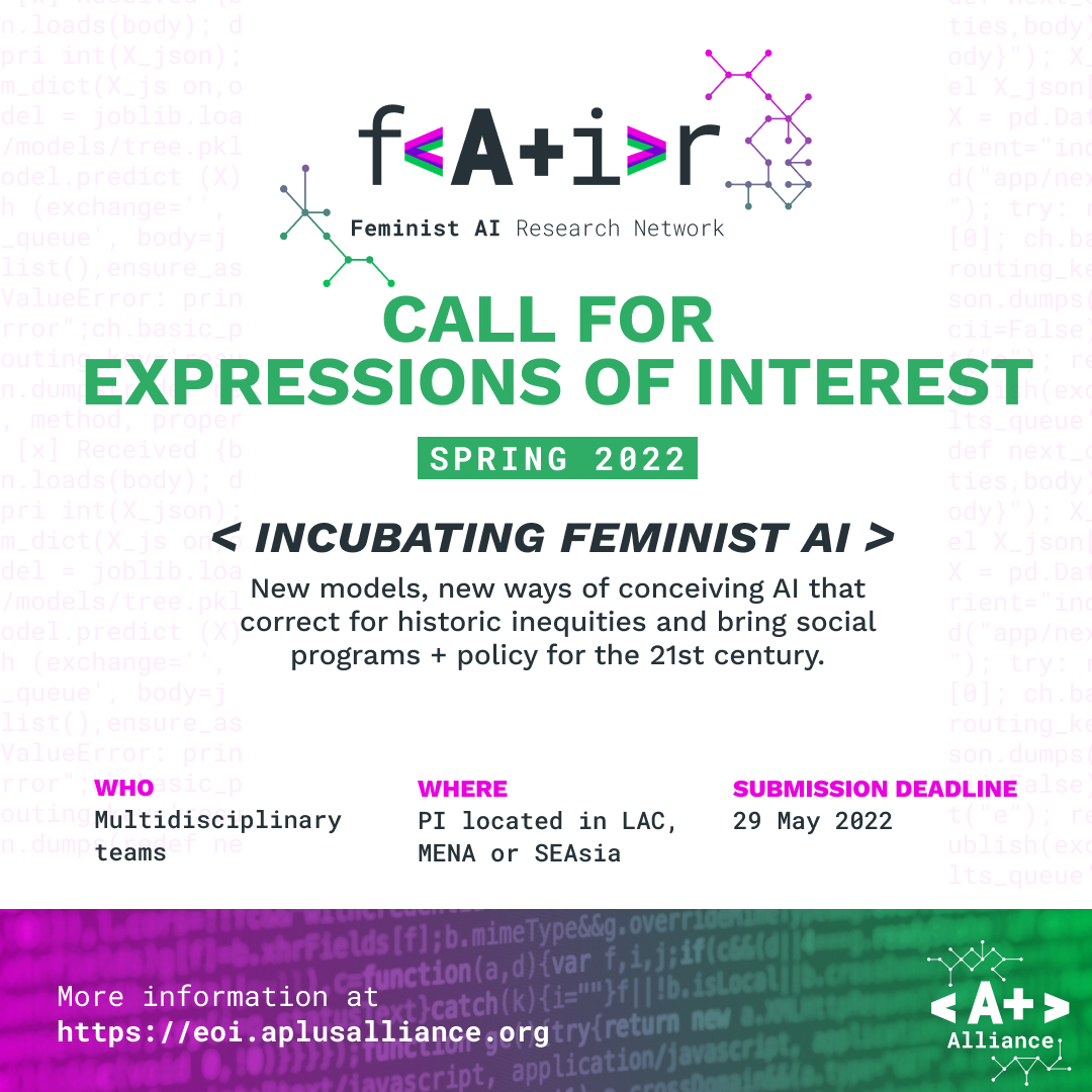 The call is led by the <A+> Alliance, a network of technologists, academics & activists working together to ensure new algorithmic systems do not embed an already biased system into our collective futures, and to explore new models that will reach beyond mitigation of bias to correct for historic inequity in order to help ensure a more fair, just and inclusive collective future for all.