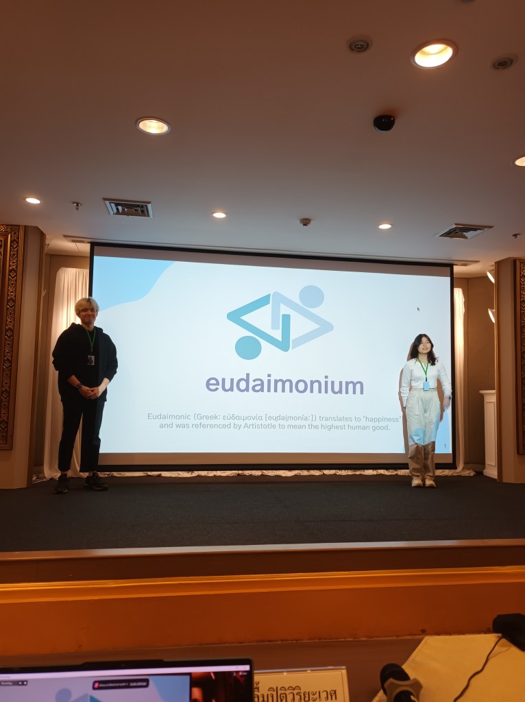 ส่วนทีมสุดท้ายได้แก่ทีมผสมจากศิษย์เก่าหมาดๆจากคณะจิตวิทยา จุฬาลงกรณ์มหาวิทยาลัย กับนักเรียนระดับ high school แห่งหนึ่งในสหรัฐอเมริกา เสนอแพลตฟอร์มสื่อสังคมออนไลน์ ชื่อว่า “Eudaimonium” ซึ่งดัดแปลงมาจากศัพท์ภาษากรีก ‘eudaimonia’ ซึ่งแปลว่า “ความสุข” หรือ “ชีวิตที่ดี” ปัญหาที่แอพนี้ต้องการแก้ไขก็คือ การที่ผู้คนเข้ามามีปฏิสัมพันธ์กันในสื่อสังคมออนไลน์ มักจะมีปัญหาเกี่ยวกับการนำเสนอตัวตนของตนเอง ซึ่งมักจะประกอบด้วยการมีอคติในด้านต่างๆมาจากการนำเสนอตัวตนนั้น ทีมนี้จึงเสนอแอพโซเชียลมีเดียที่ส่งเสริมการติดต่อกันของบุคคลจริงๆ และไม่มีการเสนออคติที่มาจากการเสนอโพรไฟล์ที่ดัดแปลงทำให้เสียความแท้จริงของตัวตนไป